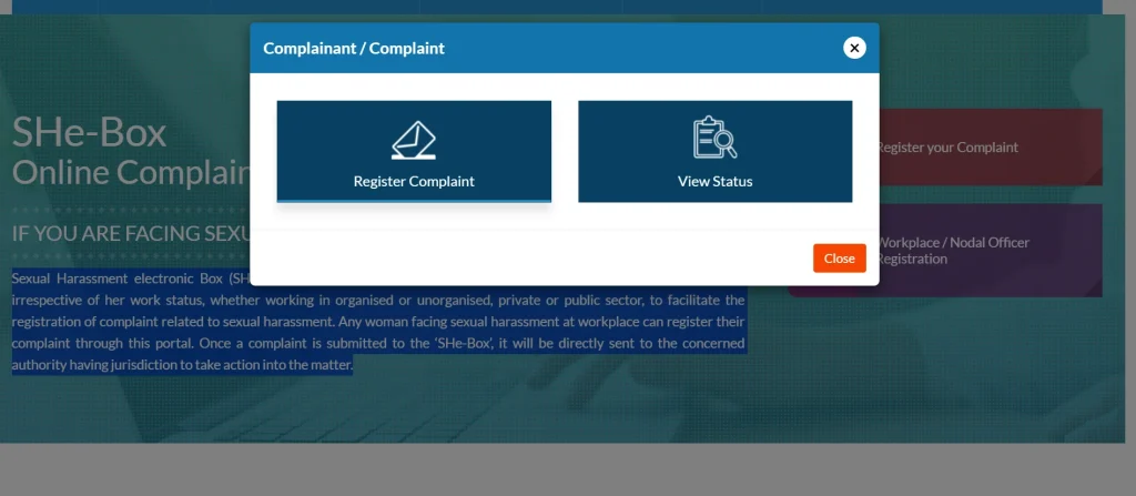 Here’s a detailed step-by-step guide on how to file a complaint via the SHE-Box portal: